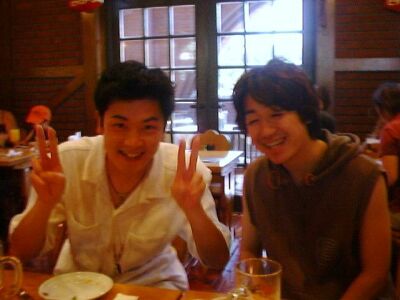 | パチンコ貯金始めた人物(左)と,この日マルハンで等価交換と思って4万勝利の計算をしていたら3万弱でショックを受けた人物(右)。おかげさまで損失は2千円で済みました。ありがとう。 |