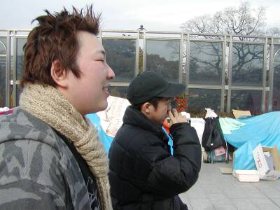 ![]() | 天王寺へ向かう途中。東京より大阪のホームレス邸の方が作りが立派でした。 鉄パイプで骨組み作ったり、車のバッテリー連ねて電源確保していたり。 |