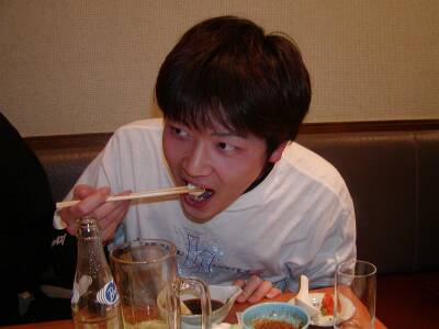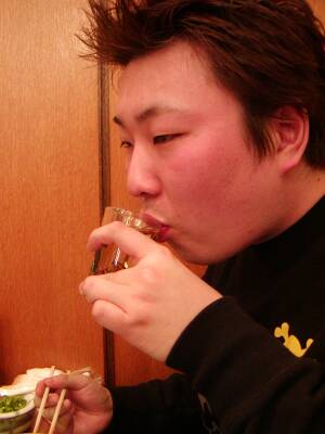 ![]() | づぼらやで河豚のコースを堪能。呑んでいるのはひれ酒です。 |