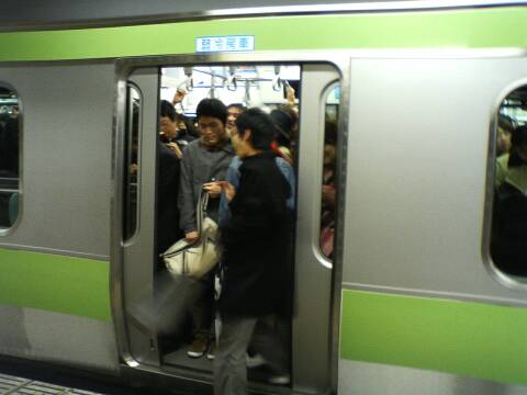 駅員1:「一カ所に固まらず、左右空いているドアよりご乗車ください。・・・一カ所に固まるとご乗車できません!(怒)」