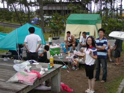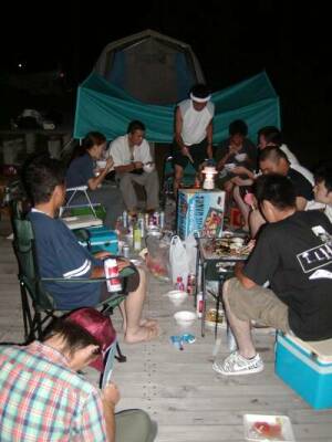 | 買い物とテントの設置に時間がかかり、みんな腹ぺこです。 |