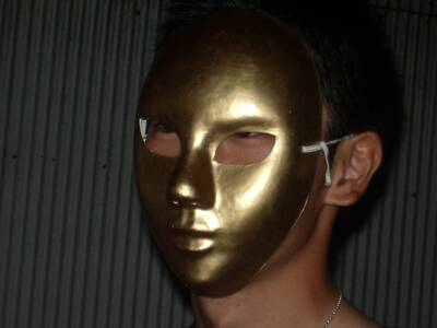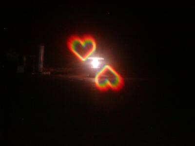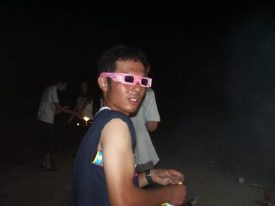 | 怪しいメガネをかけるニッポマン。これを通して明かりを見ると・・・。 |