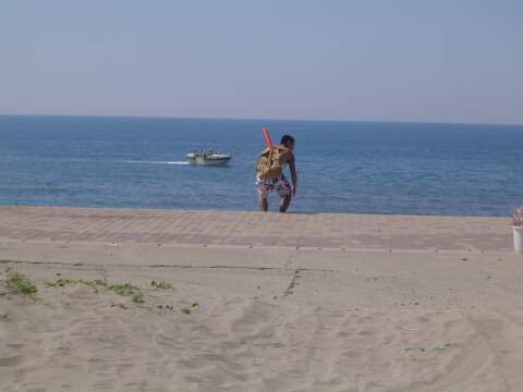 | M氏はシュノーケルを装備して、必死に海中を探索してました。 | 暑さでチョットばて気味か? |