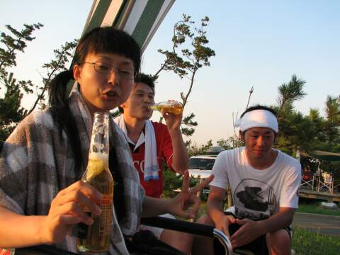 | 1人1台の車に乗って、アマノから宮沢海岸へ移動。 環境都市工学科を卒業しながら、環境問題に関しては一切無視。 |