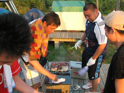 | 焼いている傍ら、食い専門部隊はこちら。 | いや、東京に居た時より明らかにメタボじゃないですか? 気をつけましょう。 |