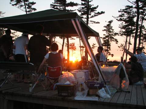 | 幹事を務めたM氏は、この眺めを計算して、 今回のキャンプ区画を予約したとのこと。 |