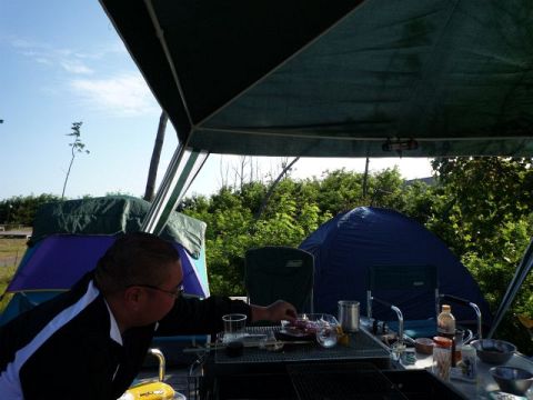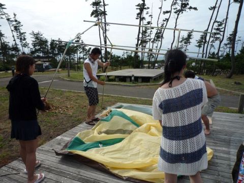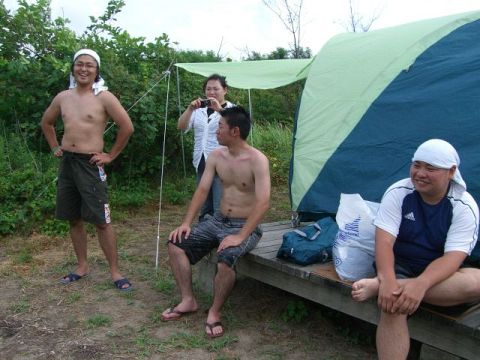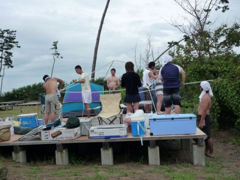 | 5Bメンバで集まれば、いつでも青春真っ盛り! | そろそろテントの設営もこなれてきました |
