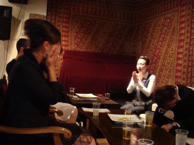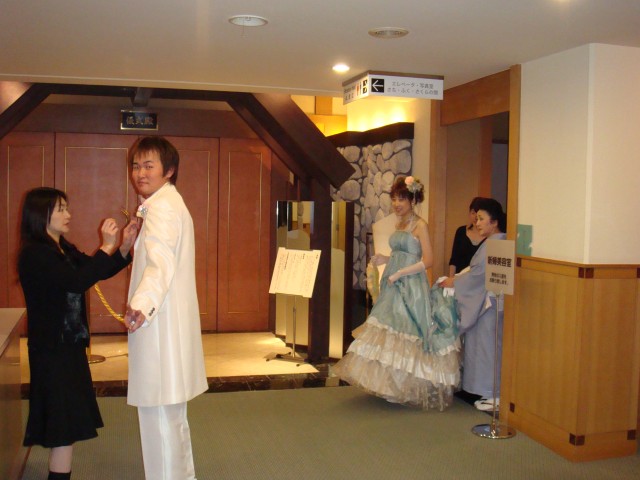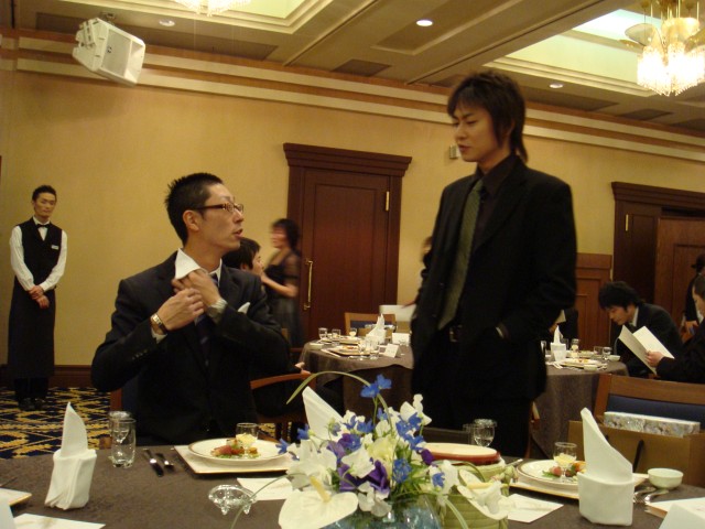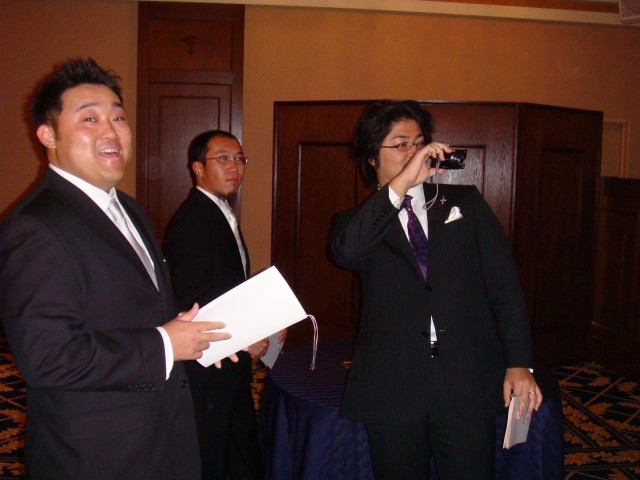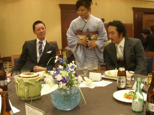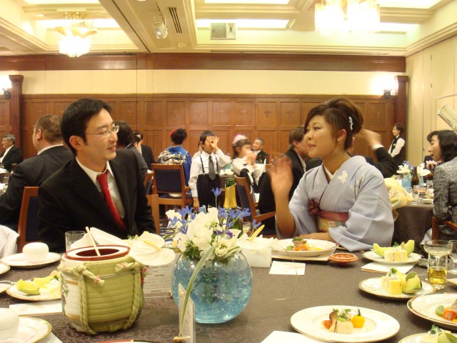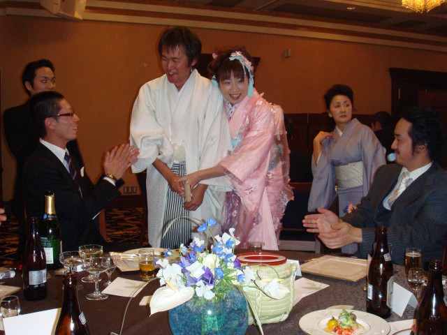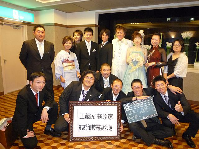 この夏結婚した万馬券&キヨちゃん夫婦が、11月22日「良い夫婦の日」に秋田で結婚披露宴を行いました。 今回は地元の人を招待したとあり、5B秋田本部メンバーが多く出席していました。 そんな中、E.T.は宇都宮での式に続いてスピーチを担当。 秋田での式は大人しめ(宇都宮が騒がしい??)だったので、若干リアクションが薄くて心配でしたが、まぁ本人たちが満足したみたいなのでヨシとします。 では、当日回収したデジカメ画像の一部を公開です。