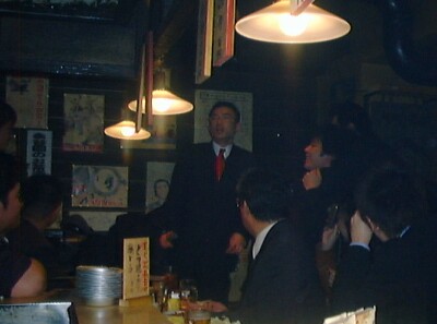 | コンクリ連中で乾杯!一人,初めから顔色が悪いです(右)。 |