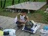 | 買い出し班はあまのへ出発。残りはテント建設中。 |
