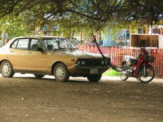 かなり味の出てるクラシックカー(?)。タイ国内を走っているのは日本車がほとんどでした。 もちろん新車も走ってる。 多かったのは、カムリ・カローラ・サニー(日本ではシルフィ)・フィット・シビックだな。