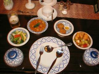 タイ料理のコース。決して激辛ではないのだけど、食べるほどに口が燃えてくるのが特徴。 甘辛いのでバグバグ食べた。