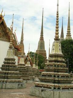 ワット・ポーの敷地内にて。大小様々な仏塔が建ち並んでいて、圧倒されます。 ここのお寺には僧侶が本当に住んでいて、さらに学校もやってました。