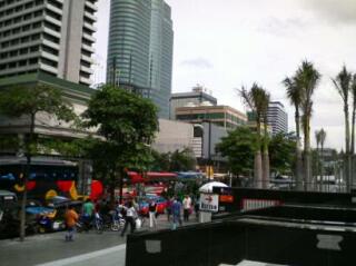 伊勢丹前、その1。やっぱりバンコクは首都なんだと実感できる。 この辺は高層ビルやデパートが建ち並んで、かなりの賑わい。