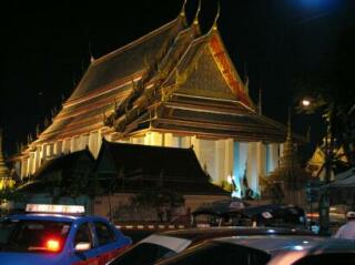 ワット・プラケオ夜の姿。キレイにライトアップされてます。 バンコクのあらゆるお寺(とはいっても何万もあるうちのいくつかだけど)がライトアップされていて、夜見て回るのも面白い。