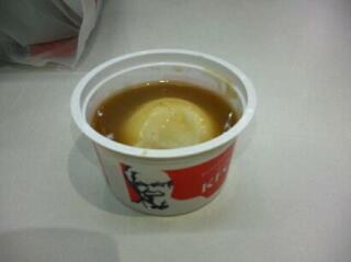 空港のケンタッキーでセットメニューを頼んでみた。アイスだと思って喜んだのもつかの間、ジャガイモの何かみたいでした。 ガックリ。。。 それにしてもガイジンサイズって大きすぎ。コーラなんて1リットルくらいあるだろ。