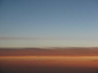 日本到着が午前7時。なんとも中途半端な〜、と思いつつ、雲の上から日の出を拝む。
