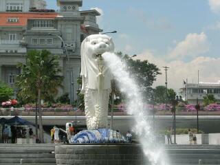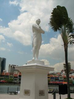 シンガポールの創設者、ラッフルズ。詳しい説明は、ウィキペディアで。 一段落したところで、予想外にスムーズな旅程をチョット調整。 回り道をしてマーライオン・パークへ向かうことにした。 それにしても暑い暑い。さすが赤道間近な国だ。 最高裁判所・ラッフルズ像を見て回り、バテバテ状態だったのでリバー・クルーズをしてみる事に。 天国な気分を味わっていると、かけ声とともにボートを漕ぐ集団が。 たぶん軍隊の訓練か何かだなと。 シンガポールは徴兵制で、終わった後も予備兵として訓練するらしい。