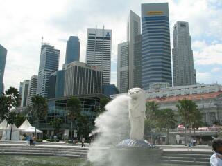 そしてシンガポールといったら絶対はずせない観光スポット。マーライオンを見てきた。 世界三大ガッカリの元祖マーライオンは、右下の木と木の間。