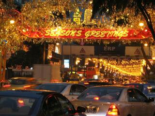 マックで一段落したところで、再びオーチャード・ロードに出てみる。クリスマスイルミネーションがそこら中すごい!! 街中で東京ミレナリオやってる状態。 ちなみにスポンサーは日立らしい。”HITACHI”の文字が至る所にあった。 日本にいるとなかなか気づきにくいけど、やっぱりアジア圏に対する日本の経済力・影響力って言うのは強力なんだなぁっと思った。 春に行ったタイもそうだったけど、まず言えるのが街中走っている車のほとんどが日本車で、ビッツ・カローラクラスのいわゆる大衆車が多いこと。 関税で販売価格が日本より高いかもしれないけど、一般庶民の多くが日本車に乗っているという事実には変わりない。 なんだかいやらしいけど、こういう時に日本生まれ・日本育ちって事がチョット誇りに思える。